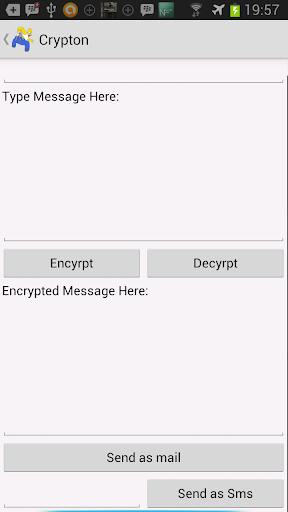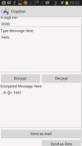 Stop sending clear text. With Crypton your private messages are secured. Very easy to use. Put a 4 digit pin, type your message and encrypt. Send as sms or email. Copy encrypted messages and paste in the encrypted field, put the correct pin and decrypte. That's all.