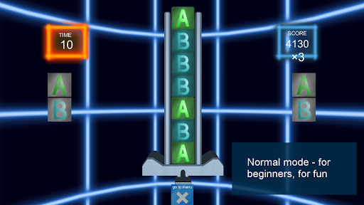 Tap the button on the left or right side of the screen, which has the same letter on it as the cube in the bottom of the screen. You score points for every successfully pressed button, and get multipliers if you do enough streaks of correct taps. But if you miss a tap, you will get a time and a multiplier penalty, so try not to do any mistake! You have only one minute to play, so you'd better hurry if you aim for a high score!