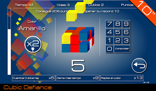 Cubic Defiance pone a prueba tu habilidad mental. Tres niveles de dificultad para poner a prueba tu atención y capacidad de contar colores según van apareciendo en pantalla.
