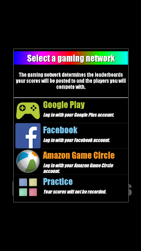 ◈ Play using your Google Plus or Amazon Game Circle account (or practice without logging in)