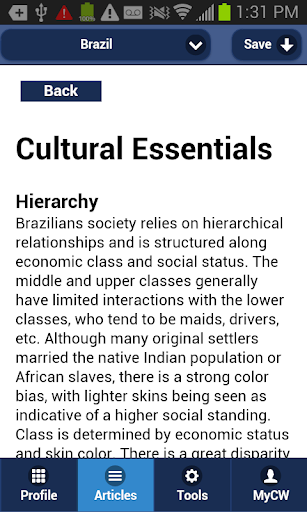 Now you can take CultureWizard with you. If your company has a CultureWizard site, you can use this app to login and save the Country Profiles Articles to your device, as well as take and save your Culture Calculator. Then you can use it offline for travel when you're out of network, or when you want to take it with you to a meeting.