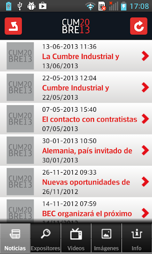 Aplicación para Android con las últimas noticias de la Feria Cumbre que tiene lugar en el Bilbao Exhibition Centre (BEC).