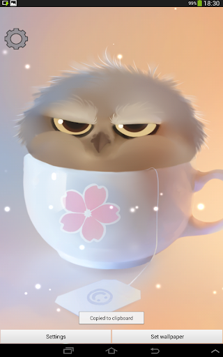 Cup Of Owl Live Wallpaper shows possibly the most cutest creature found on planet Earth which comes alive within our latest creation! Filled with interaction and customization for extra enjoyment! We hope the little owl will keep you a pleasant company and bring lots of smiles whenever you need it most!