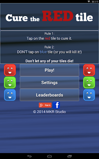 Let me introduce you to a group of nice, happy blue tiles. Unfortunately, the tiles are very fragile and often get sick. An infected tile turns green for a while, then red. Tap on it to cure it before it's too late! At the same time, be careful not to tap the blue tiles, as it will harm them!