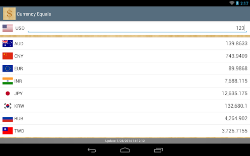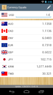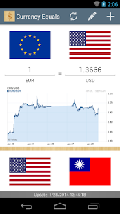 Currency Equals 是一個簡單易用的貨幣轉換工具,在開啟時自動更新資料(1小時更新1次),也可以離線使用。貨幣轉換器可以很容易的計算貨幣匯率的轉換結果,圖表可以呈現貨幣匯率的歷史資料。