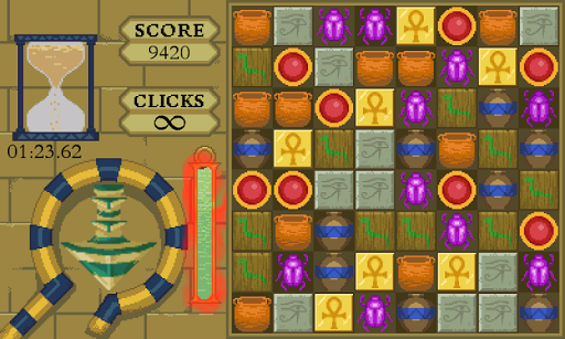 In Curse of Anubis, you use the power of your curse to match 3 or more tiles to release their magic and earn yourself points! Harness the power of gravity using the magical Staff of Anubis and make the tiles slide in the direction of your choosing! Save up your power and unleash it with a destructive special ability.