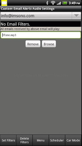 -Choose to use No Email Filters. This gives a catch-all sound setting to all emails you receive. Switch back to Use Filters and your old Filters are still saved.