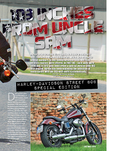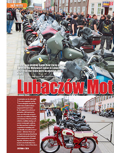 Custom is bimonthly one of a kind motorcycle magazine in Poland. We avoid what is typical. We describe custom motorcycles build around the world and also in Poland. We are with our camera wherever you can meet people with a customizing passion. We visit exhibitions, competitions and rallies. We are also doing reports from drag and vintage races.