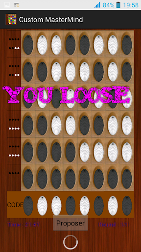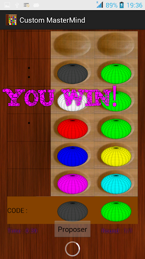 Quand vous proposez un code, un pion noir signifie que vous avez une pièce de la bonne couleur qui est à la bonne position alors qu'un pion blanc signifie que vous avez une pièce de la bonne couleur qui n'est pas à la bonne place.