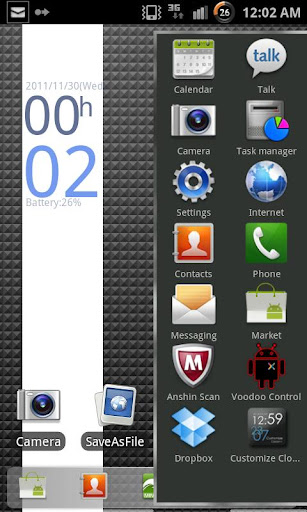 ○ This application supports the indication of the battery residual quantity. And you can locate a clock by changing the transparency without disturbing the wall paper.
