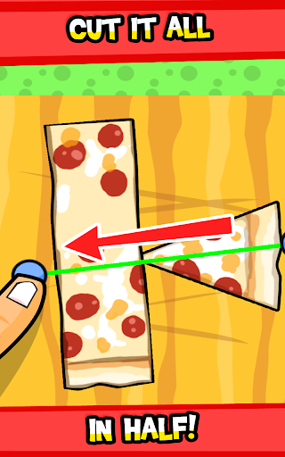Cut In Half: Pizza is all about precision. The clock is ticking and the better you cut the more time you have to eat that tasty cheesy pizza!