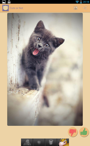 After years of research, our best scientists have come to an amazing conclusion: There are never enough cats. This application is the answer to that: Browse through thousands of random cat pictures! Decide how cute is each picture! Share your favorite images, and spread the cuteness!