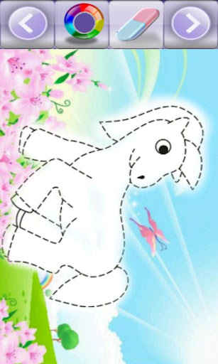 Children's workbook for Ages 3 - 6 years, to keep preschoolers engaged and build motor skills. Trace the dotted lines in the color of your choice. The program contains collection of 20 pictures of little pony with dots to trace. Draws as you move your finger.