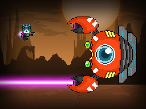 This three-eyed cyber alien cat is hungry for some robot fish and he's going to get some no matter what! Join this crazy cat as he explores a scifi-themed robotic alien planet filled with monstrous alien seafood, including mutant anglerfishes, laser king crabs, colossal nautiluses, shuriken starfishes, and many, many more!