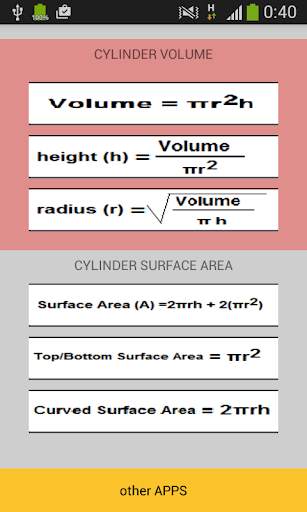 Use the Cylinder Calculator to calculate height, radius, volume, curved surface area, areas of the top and bottom circles, or total surface area of a cylinder.