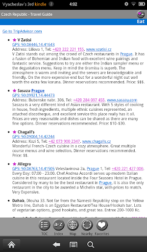 MobileReference Travel Guides provide detailed, practical information about attractions, landmarks, transportation, cultural venues, dining, lodging, history and much more. They are indexed alphabetically and by category, making it easier to access individual articles.
