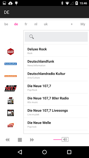 Listen to Internet radiostations with this clean easy-to-use app! Tab on a countrylist to get an overview of the internetradio stations. These countries are available: UK, Germany, France, The Netherlands and Belgium.