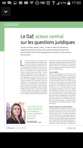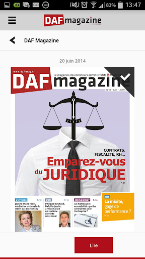 Au cœur de l’entreprise et de sa stratégie, la fonction administrative et financière est devenue polymorphe. Aux compétences métier incontournables s’est ajouté un éventail de domaines d’intervention faisant du DAF un véritable chef d’orchestre et « bras droit » du dirigeant. DAF Magazine a pour ambition de vous faire partager la vision de vos homologues : décryptages de stratégies d’entreprises, témoignages de DAF, parcours atypiques, regards sur l’avenir… ce magazine, édité par Editialis, sera très vite pour vous le rendez-vous régulier de votre communauté. Et, parce que votre fonction s’appuie sur des compétences techniques pointues, DAF Magazine est conçu comme une véritable boite à outils, vous apportant sous forme de fiches pratiques et d’expertises, une information rigoureuse et immédiatement opérationnelle.