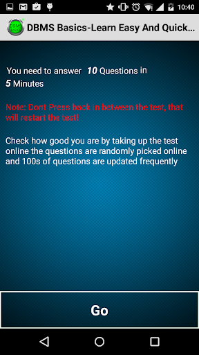 DBMS Basics Learn Easy and Quick- Get set with DBMS Basics. Online Test with Discussion. Check how good you are by taking up the test online, the questions are randomly picked online and 100s of questions are updated frequently. Discuss on important topics. Be the highest scorer and make your name come on the home screen!