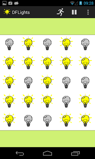 Das Spiel "Lights" besteht aus einem Gitter mit 5*5 Lampen. Beim Start des Spiels sind alle Lampen ausgeschaltet. Beim Berühren einer Lampe wechseln diese sowie die 4 Nachbarlampen ihren Zustand (diagonale Nachbarlampen sind