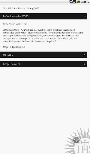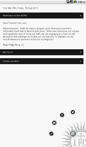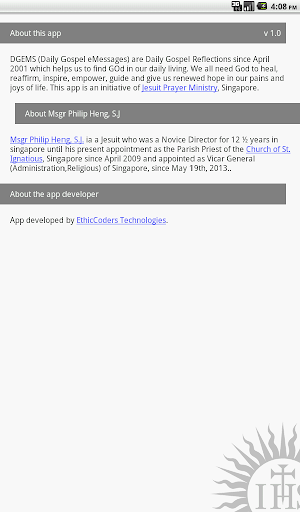 The app contains the Gospel passage for the day, following the Catholic liturgical calendar, and also a short reflection written by Msgr Philip Heng, S.J. This app is an initiative of the Jesuit Prayer Ministry.