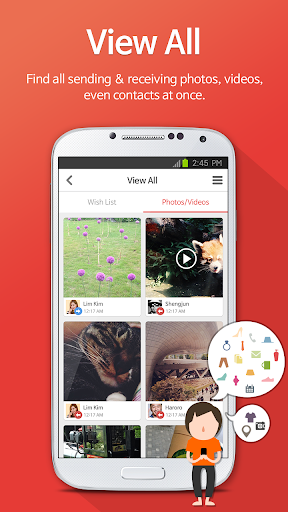 Tired of endlessly scrolling up and down to find a picture you shared in chat rooms? If so, DONTALK is the perfect messenger for you. You can find all pictures/videos/contact information that were sent and received from all your chats in “View All”.