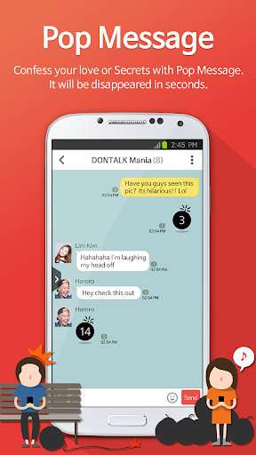 Self-destructing message, Pop Message is crème de la crème of DONTALK. You can send pictures, videos, and text messages that will self-destruct leaving no trace behind.