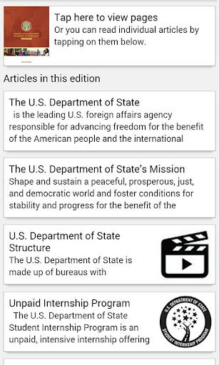 This official U.S. Department of State digital brochure is designed to educate those interested in an internship supporting U.S. diplomacy and provides an overview of the global opportunities offered every spring, summer and fall. The U.S. Department of State offers unpaid internships to U.S. citizens who are Undergraduate (junior or seniors) or Graduate Students. The brochure features a chart that can be used as a guideline to match specific majors with appropriate offices or bureaus. As a companion to the Student Internship brochure, DOSCareers, the Department's careers-focused mobile app, explains and provides information on the Foreign Service application and selection processes.