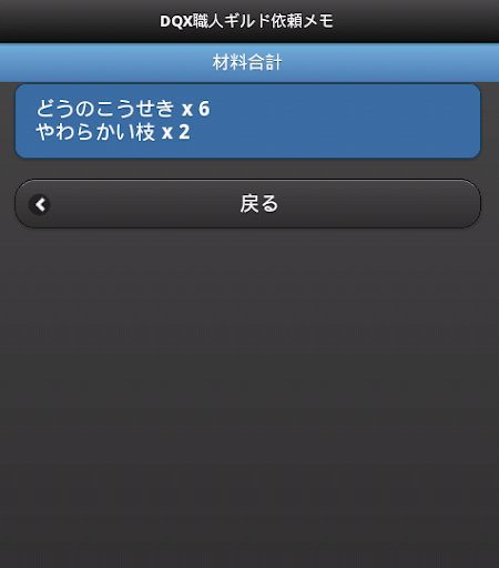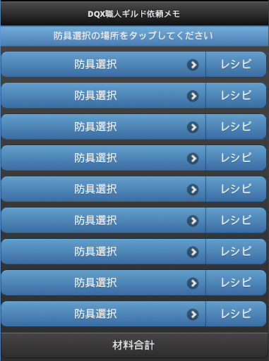 某有名ゲーム支援アプリです。武器名を選んで表示、レシピ確認、依頼品材料合計の計算が出来ます。