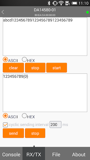 The Dialog Serial Port Service (DSPS) reference application is an application for demonstrating the SPS service in Android and iOS systems. The DSPS application can discover, connect and exchange data with other DSPS enabled devices within the Bluetooth RF range of the mobile device.