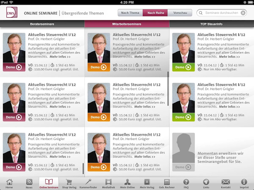 Mit dieser App erhalten Sie einfach und schnell Zugriff auf Ihre E-Seminare von der DWS-Steuerberater-Online-GmbH. Im Angebot befinden sich eine große Anzahl aktueller Seminare rund um das Thema Steuerrecht, die für Steuerberater, Mitarbeiter von Steuerkanzleien und Auszubildende in den steuerberatenden Berufen konzipiert wurden.