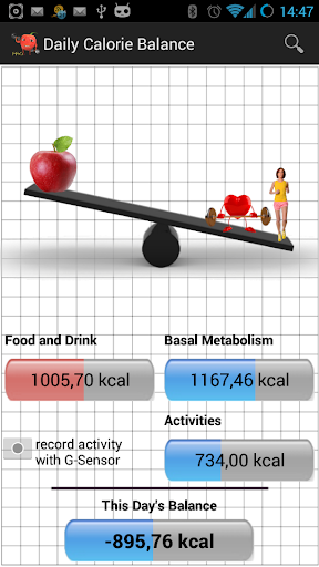 "Daily Calorie Balance PRO" is an app that helps you to lose weight. Charges your calories-in (food, drinks) against your calories-out (base consumption, activities).