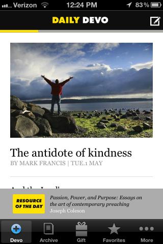 Daily Devo is offered free from Wesleyan Publishing House. Strengthen your relationship with God through the daily readings and reflection on his Word. You’ll also receive inspiration and encouragement rooted in Scripture and motivation each day to act upon new insight and knowledge.