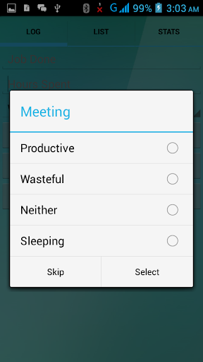 Daily Log keeps a record of all the things you do and the time you spend in doing them in 2 simple steps: