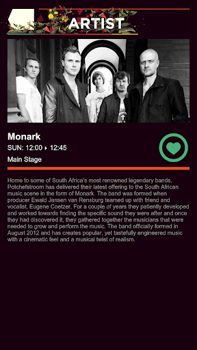 View all the artists performing, and information about them. Check out the line-up, and add specific artists to your own schedule. Add your tent location, and the app will help you find your way to your bed after a long day in the sun!