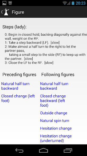 Look up detailed descriptions, step-by-step instructions, and animated diagrams for 10 ballroom and latin american dances and almost 90 figures and 18 suggested amalgamations, with more coming in future updates.