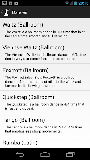 Note that this app is not meant to replace actual dancing lessons (because nothing can, really), but to supplement them and to serve as a reference and reminder.