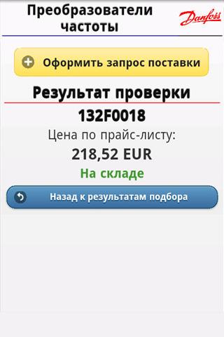 The "Danfoss frequency converter configurator" allows you to choose converters in two-steps for simple applications such as fans, exhaust fans, centrifugal pumps, piston pumps, screw compressor, piston compressor. You only need to select the application and also specify current / voltage / power of your motor. By using this program, you can get the order code of the frequency converter, its retail price and how many converters are on Moscow stock right now.