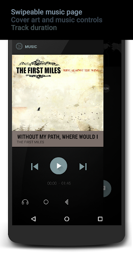Music page shows info of the music playing. Note that the skin does not contain any music build in. (Band on images and video is my own music).