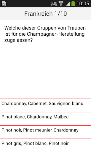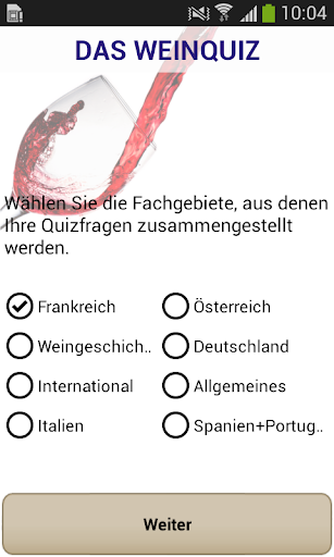Seit dem letzten Update besteht das Quiz aus mehr als 1.500 Fragen mit jeweils 4 Antwort-möglichkeiten und eine ausführliche Erklärung bzw. Begründung zu den richtigen Antworten. Die Quizfragen sind in 8 Fachgebiete unterteilt: ALLGEMEINES, ÖSTERREICH, DEUTSCHLAND, FRANKREICH, ITALIEN, SPANIEN & PORTUGAL, INTERNATIONAL sowie WEINGESCHICHTE.