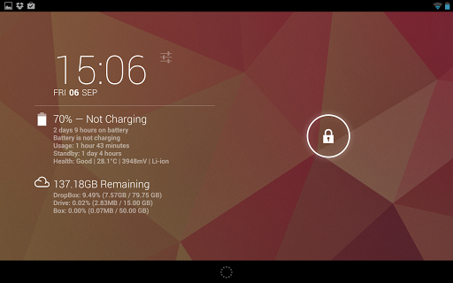 Keep track of your cloud storage by monitoring your DropBox, Google Drive and Box account storage.