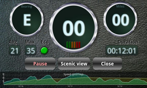 In-car dashboard with camera thru-view, useful speed and driving statistics, email journey log, and lots more!