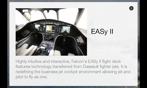 Find out more about the Falcon 2000LXS on your Android device. 360° interior and exterior views allow you to discover the Falcon 2000LXS from its finest sides.