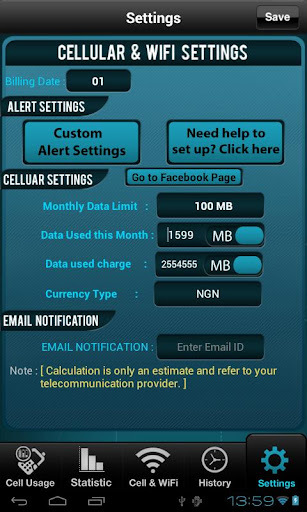 You can set up alerts so Data Dude will send you a message via text and email as a back-up to you or to someone else if you prefer when you use up your data. If you use 100% of your monthly data limit with time left within your monthly plan but still want to keep using your phone/tablet's internet, Data Dude will let you know exactly how much it is costing you regularly up until the end of your monthly plan– plus it works in all currencies from Euros, Australian Dollars to Rupees and more.