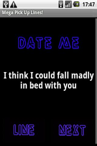 Super fun game to play while out partying with your friends. Use the next funny line in the app to try pick up a Guy or Girl at the Bar or in a Club! Great fun to dare your friends to use the next random line on a stranger! Or if your brave enough try them out yourself!