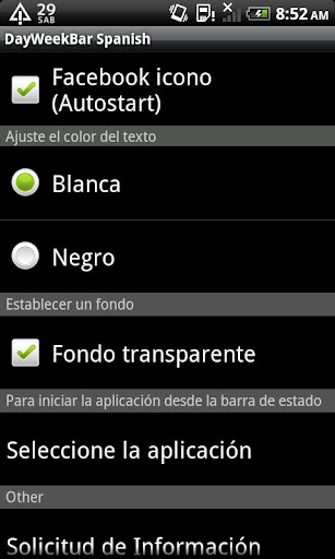 Usted puede especificar la ejecución de aplicaciones de la barra de estado.