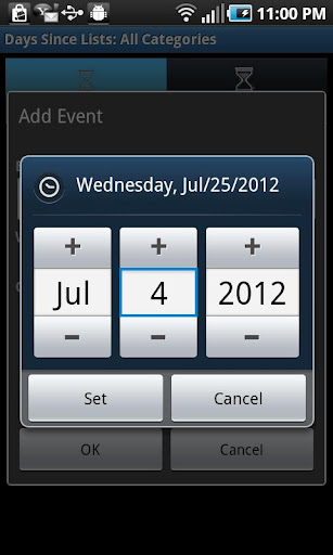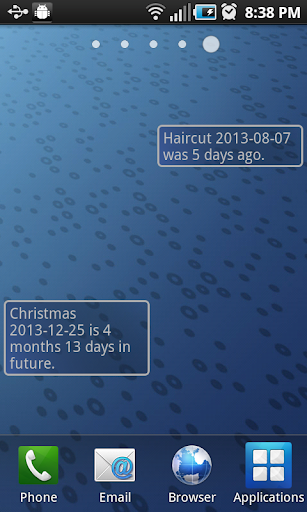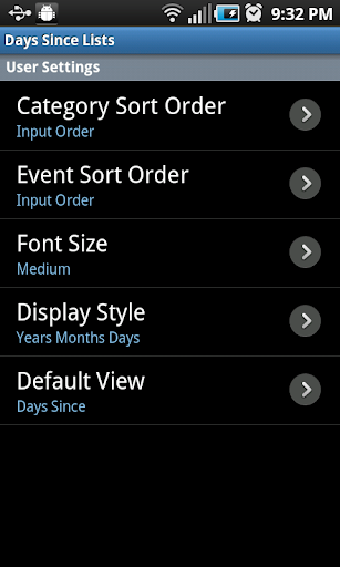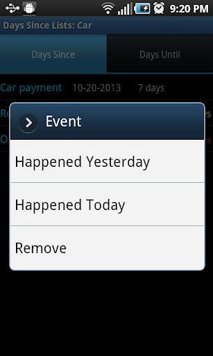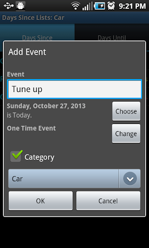 Keep track and organize lists of events. You will know exactly how many days since and days until any number of events. You can organize the events in categories. You can specify how often an event should repeat. The lists are color coded to tell you if an event is near or has past.