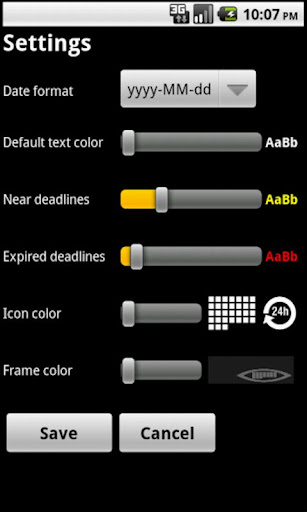 Customize a variety of options including date formats (mm/dd/yy, yyyy-mm-dd, dd.mm.yyyy, etc.), background colors (four in all), and font colors (15 in all). Has a built-in Help screen, too.