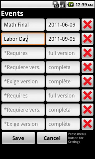 A widget for monitoring up to 8 upcoming events. The perfect companion for any calendar app! DeadlineEye tells you how many days remain until your events. Carry your countdowns wherever you are!