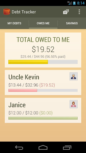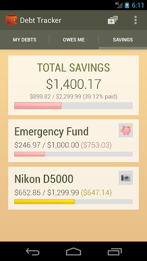 - A bar updates as you pay on the debt, giving you a visual indicator of your progress.